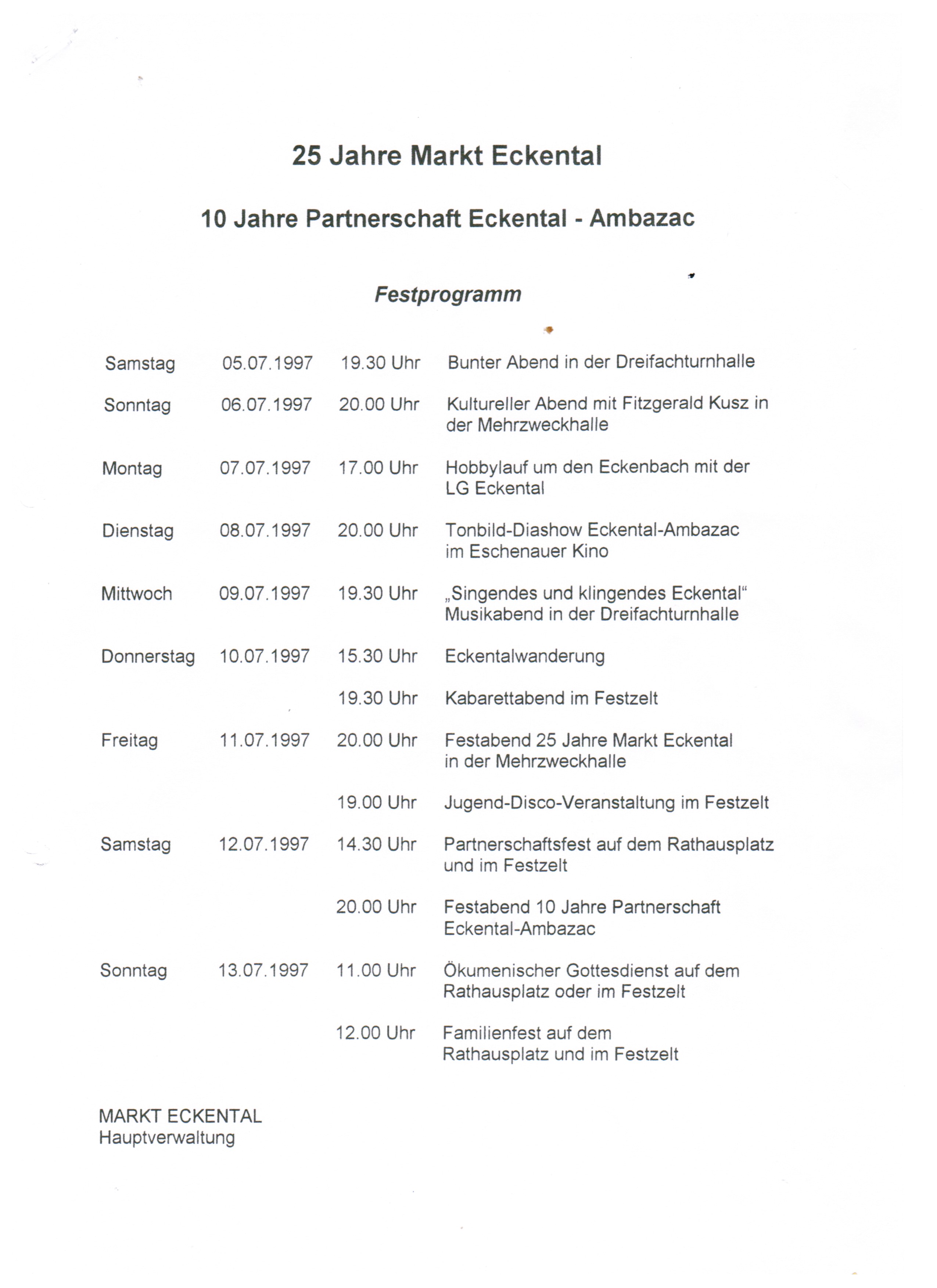 Lehre in einer Kunstschreinerei in Ambazac zu absolvieren), Vertiefung der kulturellen und sportlichen Beziehungen (zu Pfingsten kommen 2 Fußballmannschaften aus Ambazac zu einem Freundschaftsspiel mit dem TSV Brand und dem ASV Forth).
